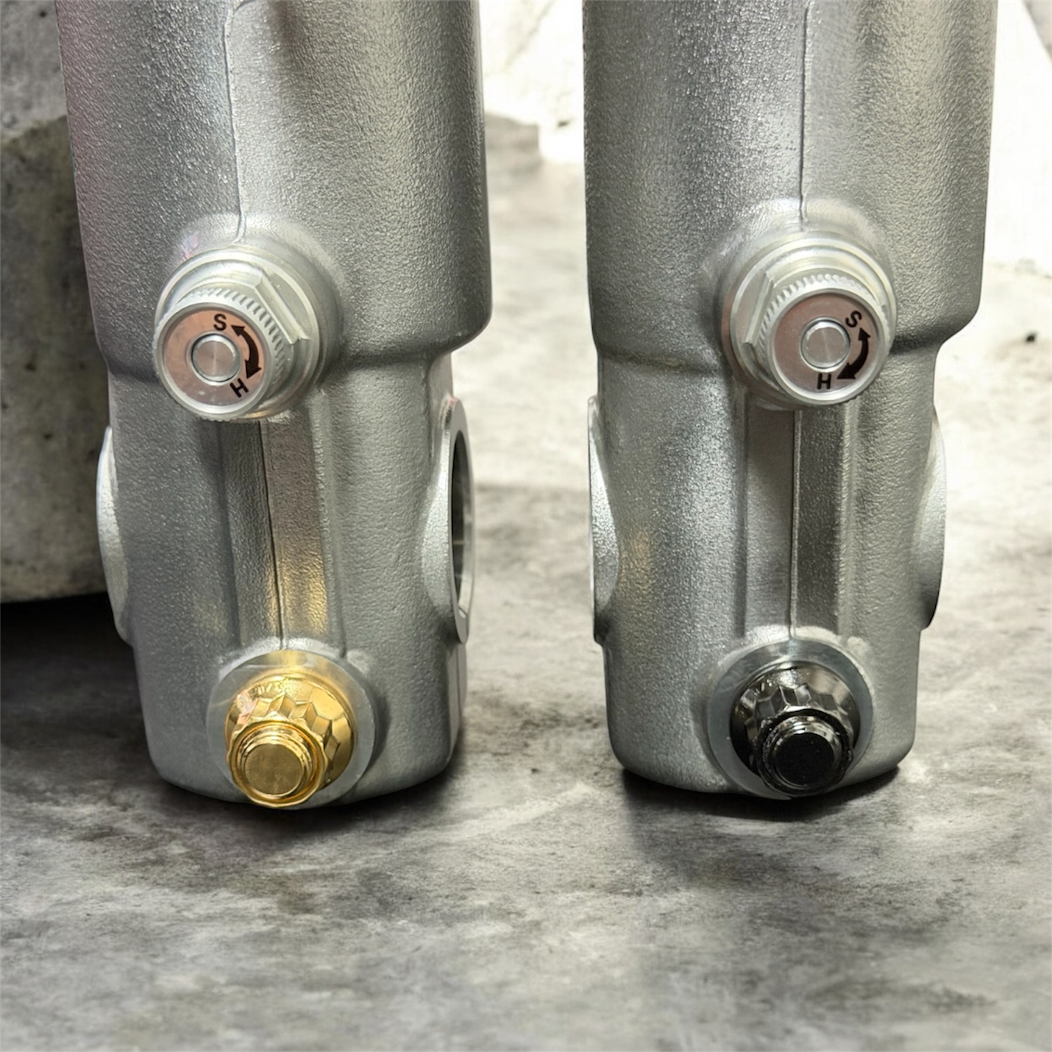 Our Black Chrome finish is a custom-plated gloss black with subtle chrome undertones. It’s a standout look that brings a touch of depth and shine to your hardware without going over the top. By manipulating the plating process, we’ve created a unique black that reflects just enough to catch the eye—perfect for riders who want a premium, sleek aesthetic that pops just enough without stealing the show like our 24K Gold options.