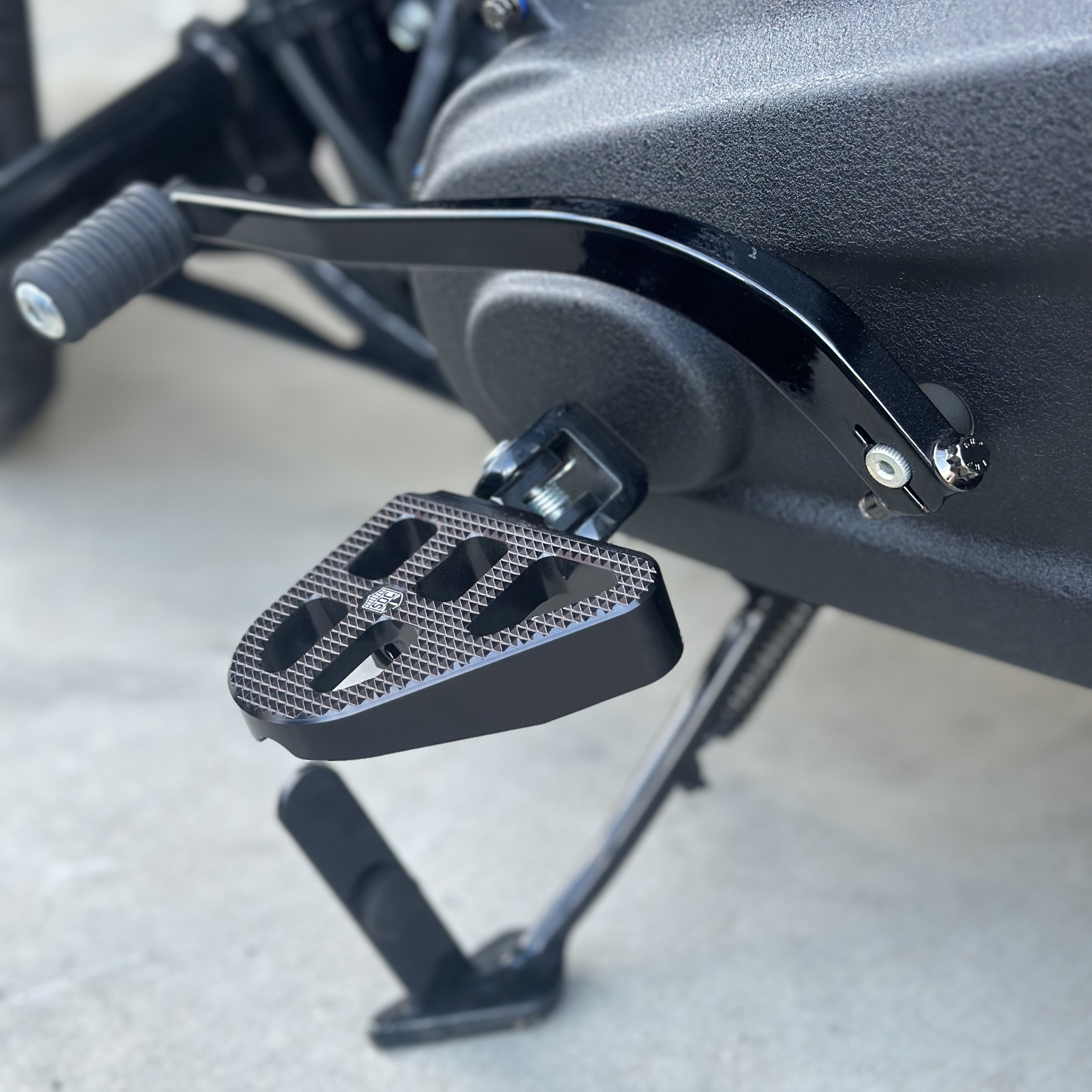 Our standard Black finish, on the other hand, is a clean, flat black that blends in with most motors. It’s more understated and stealthy, making it ideal for riders who prefer a low-key, murdered-out look where the bolts don’t draw too much attention.